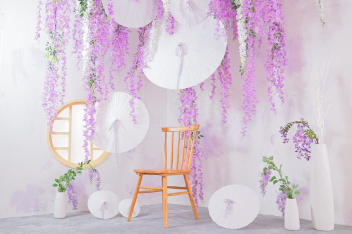 藤の花に囲まれた幻想的な和風セット
