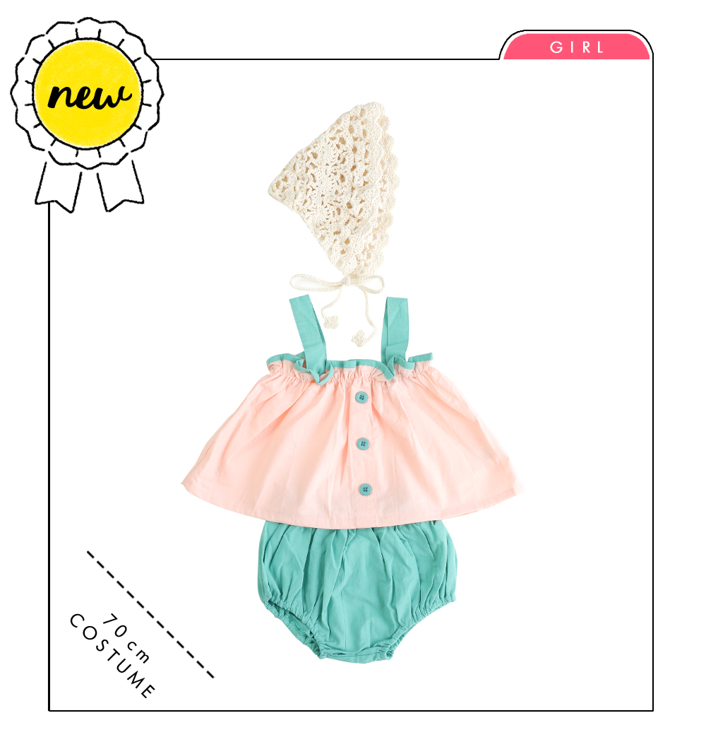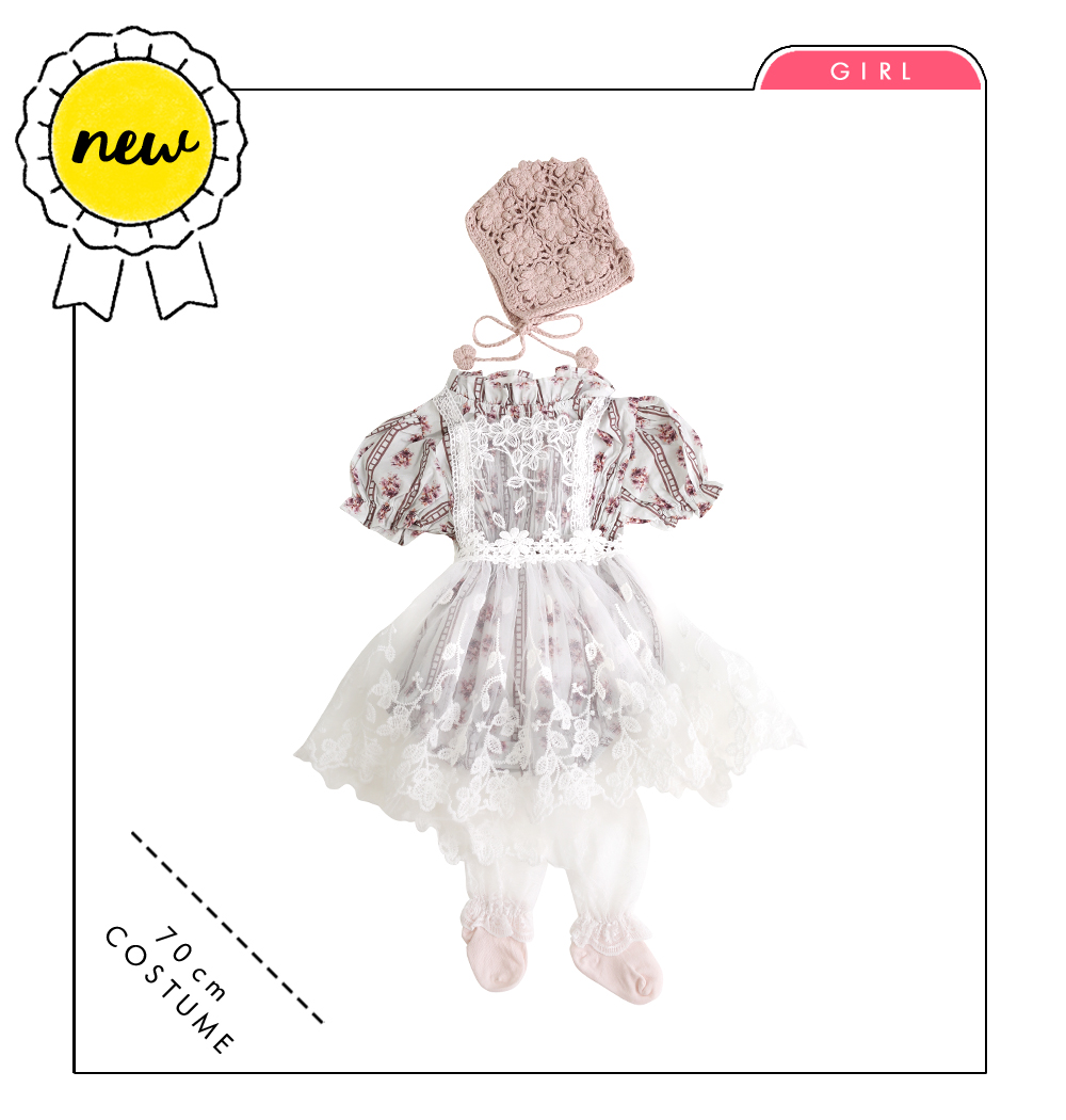 花柄ロンパース×レースエプロンが