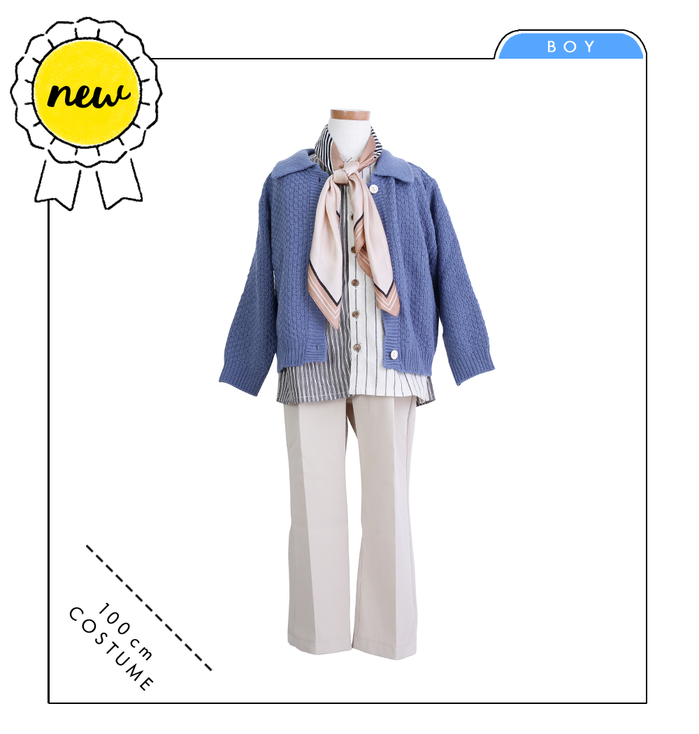 ブルーのカーディガンと