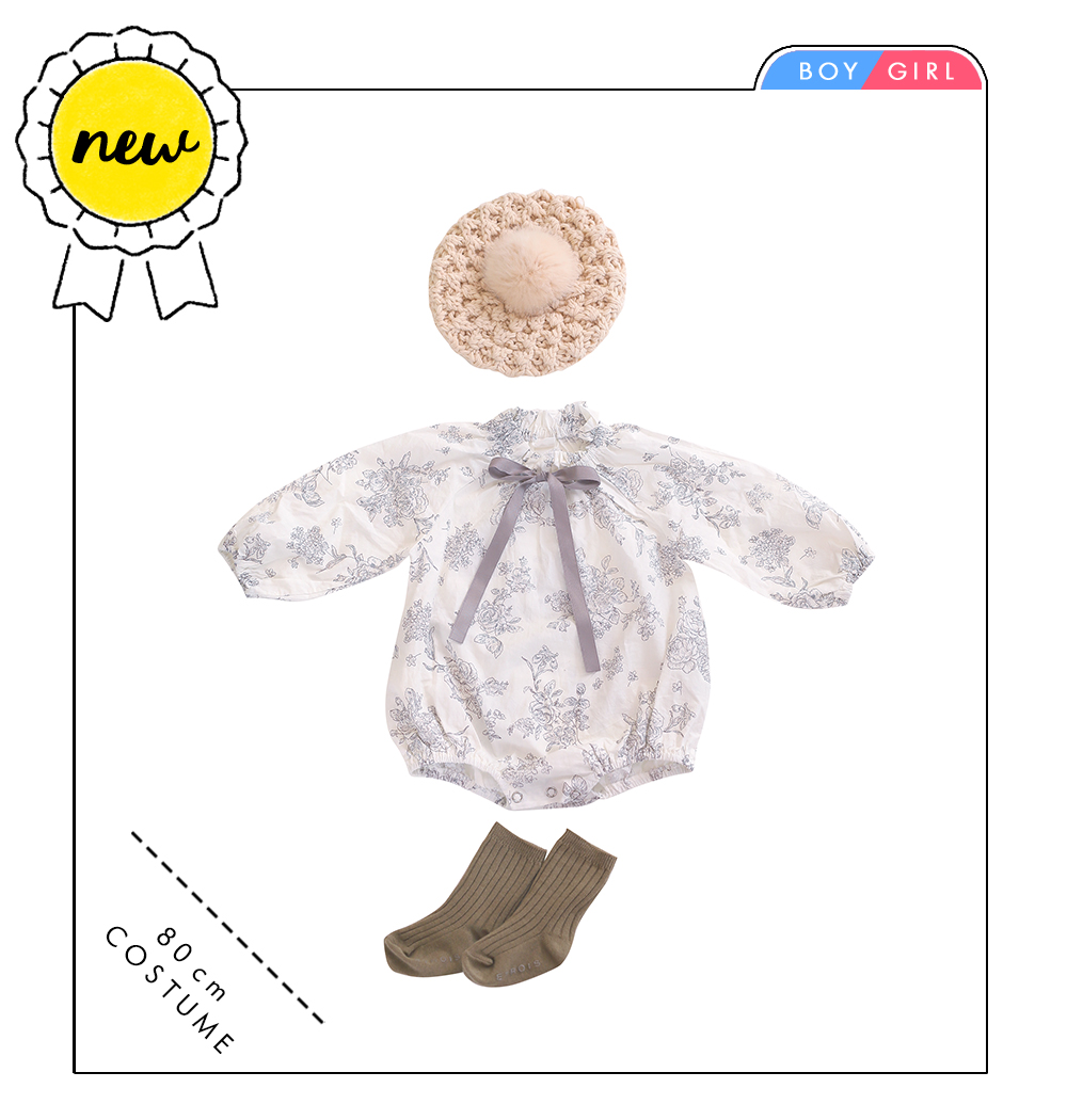 大人っぽいセピアカラーの花柄ロンパースが