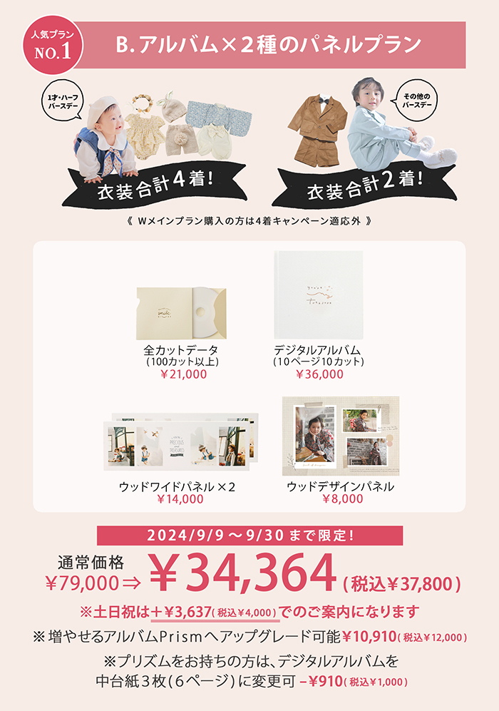 メインの『お子様が2名・2枠撮影』を