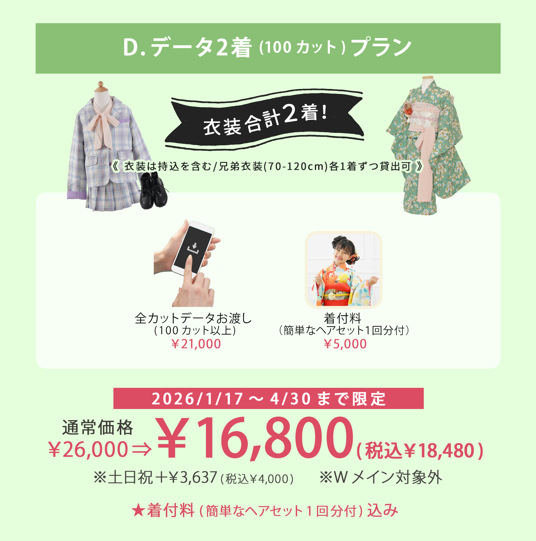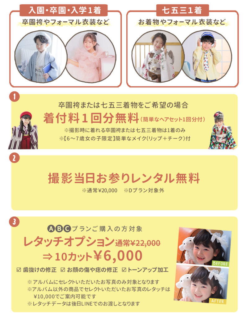 (例:七五三着物+卒園袴等)