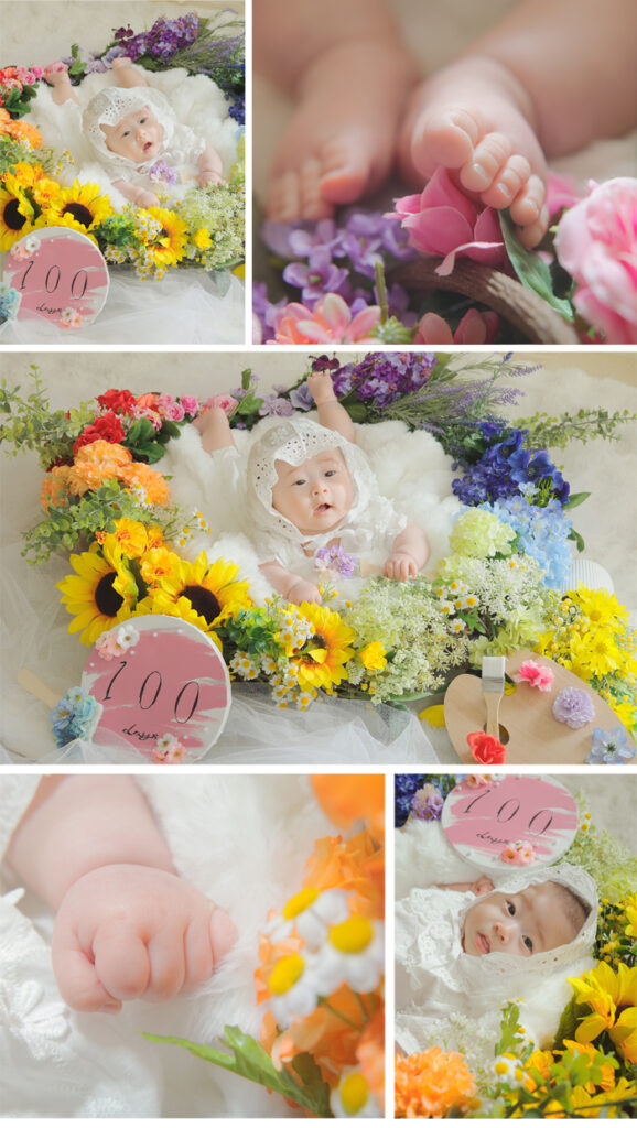 | ・100日さん(3-4ヶ月のお子様)限定の 撮影スタイルになります。 |
