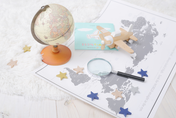 小さなお子さまだけでなく、七五三や入学の男の子も楽しめるように地球儀やルーペ、飛行機などもご用意していますよ☆