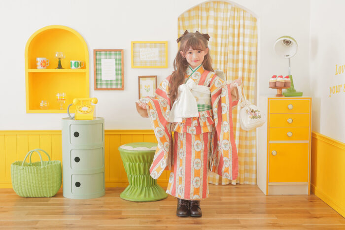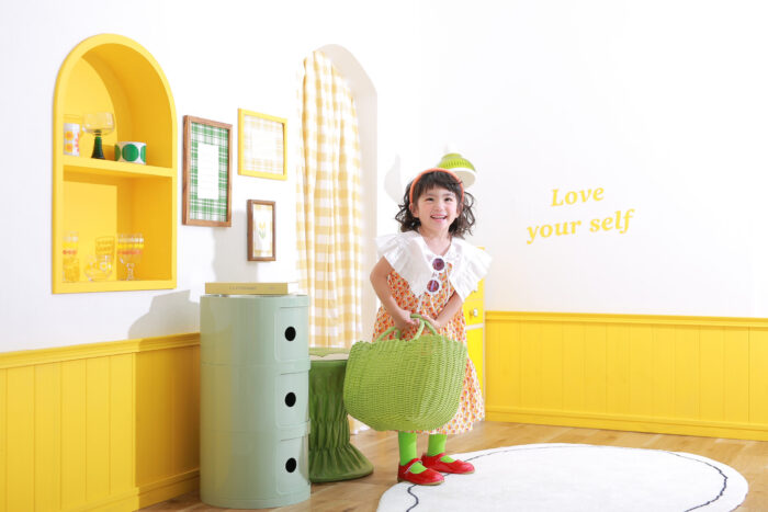 イエローとグリーンのレトロなお部屋