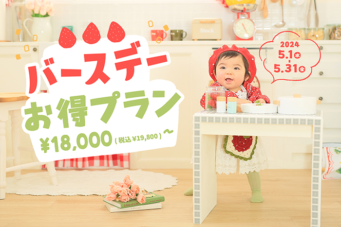 ❁バースデーお得プラン❁ 生まれて初めてのお誕生日は JAMでお得に可愛く撮影しましょう✨ 《実施期間》 2024年5月…