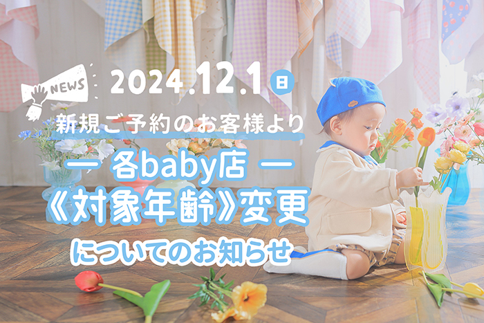 当店各baby店の 対象年齢変更のお知らせ 12.3更新 スタジオJAMです 先日お知らせいたしま…